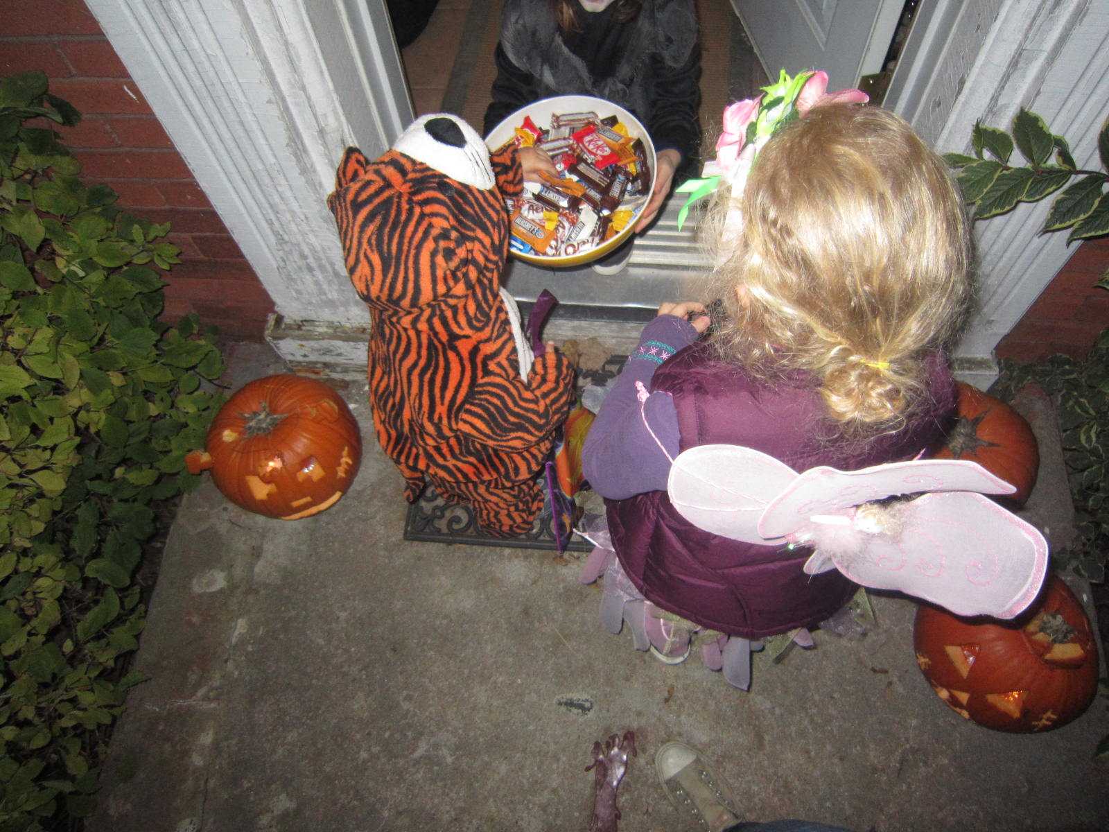 This is funny. At this house, the person just held out a big bowl of chocolate bars. The kids actually combed through them, looking for ones they wanted. Seriously, do you guys know the difference between a Caramilk and a Mars bar?